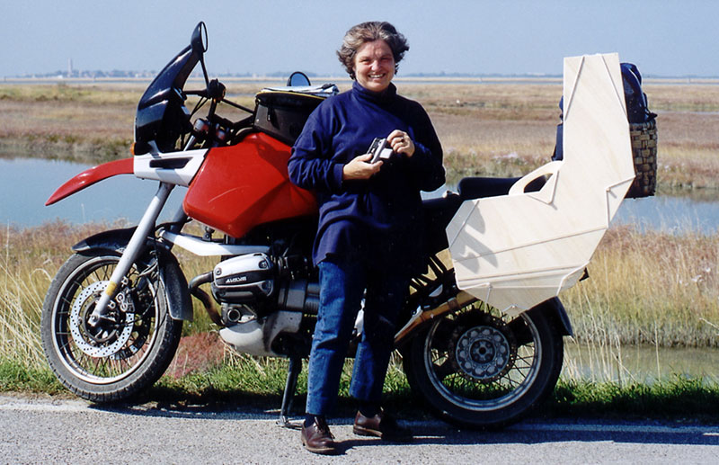 Una custodia da motocicletta contenente Antropopellegrino e Ornitopellegrino.